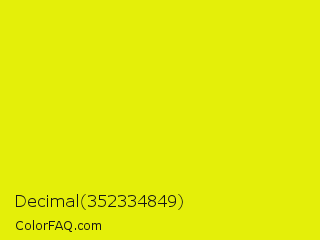 Decimal 352334849 Color is a normal yellow color and the nearest color is Peridot #e6e200. Hex code #e4ef09 and RGB value is rgb(228,239,9). In RGB color space, this color is composed of 89% red, 94% green, 4% blue, In CMYK color space, this color is composed of 5% cyan, 0% magenta, 96% yellow , 6% black , In HSL color space, this color has a hue angle of 63° , 93% saturation and 49% lightness.