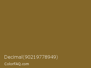 Decimal 90219778949 Color is a normal orange color and the nearest color is Kumera #886221. Hex code #846729 and RGB value is rgb(132,103,41). In RGB color space, this color is composed of 52% red, 40% green, 16% blue, In CMYK color space, this color is composed of 0% cyan, 22% magenta, 69% yellow , 48% black , In HSL color space, this color has a hue angle of 41° , 53% saturation and 34% lightness.