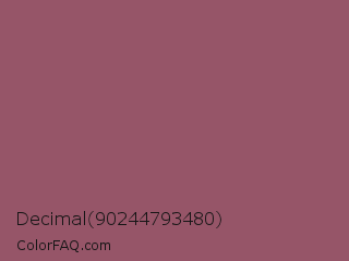 Decimal 90244793480 Color is a normal rose color and the nearest color is Mauve Taupe #915f6d. Hex code #965568 and RGB value is rgb(150,85,104). In RGB color space, this color is composed of 59% red, 33% green, 41% blue, In CMYK color space, this color is composed of 0% cyan, 43% magenta, 31% yellow , 41% black , In HSL color space, this color has a hue angle of 342° , 28% saturation and 46% lightness.