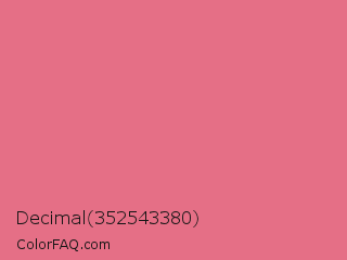 Decimal 352543380 Color is a light red color and the nearest color is Candy Pink #e4717a. Hex code #e56f86 and RGB value is rgb(229,111,134). In RGB color space, this color is composed of 90% red, 44% green, 53% blue, In CMYK color space, this color is composed of 0% cyan, 52% magenta, 41% yellow , 10% black , In HSL color space, this color has a hue angle of 348° , 69% saturation and 67% lightness.