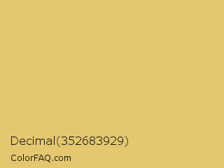 Decimal 352683929 Color is a light orange color and the nearest color is Rob Roy #eac674. Hex code #e5c76f and RGB value is rgb(229,199,111). In RGB color space, this color is composed of 90% red, 78% green, 44% blue, In CMYK color space, this color is composed of 0% cyan, 13% magenta, 52% yellow , 10% black , In HSL color space, this color has a hue angle of 45° , 69% saturation and 67% lightness.