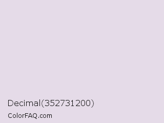 Decimal 352731200 Color is a very light purple color and the nearest color is Snuff #e2d8ed. Hex code #e5dbe8 and RGB value is rgb(229,219,232). In RGB color space, this color is composed of 90% red, 86% green, 91% blue, In CMYK color space, this color is composed of 1% cyan, 6% magenta, 0% yellow , 9% black , In HSL color space, this color has a hue angle of 286° , 22% saturation and 88% lightness.