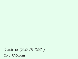 Decimal 352792581 Color is a almost white green color and the nearest color is Hint Of Green #e6ffe9. Hex code #e5feed and RGB value is rgb(229,254,237). In RGB color space, this color is composed of 90% red, 100% green, 93% blue, In CMYK color space, this color is composed of 10% cyan, 0% magenta, 7% yellow , 0% black , In HSL color space, this color has a hue angle of 139° , 93% saturation and 95% lightness.