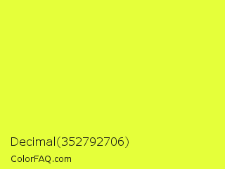 Decimal 352792706 Color is a light yellow color and the nearest color is Golden Fizz #f5fb3d. Hex code #e5ff3a and RGB value is rgb(229,255,58). In RGB color space, this color is composed of 90% red, 100% green, 23% blue, In CMYK color space, this color is composed of 10% cyan, 0% magenta, 77% yellow , 0% black , In HSL color space, this color has a hue angle of 68° , 100% saturation and 61% lightness.