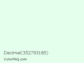 Decimal 352793185 Color is a almost white green color and the nearest color is Hint Of Green #e6ffe9. Hex code #e5ffed and RGB value is rgb(229,255,237). In RGB color space, this color is composed of 90% red, 100% green, 93% blue, In CMYK color space, this color is composed of 10% cyan, 0% magenta, 7% yellow , 0% black , In HSL color space, this color has a hue angle of 138° , 100% saturation and 95% lightness.