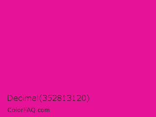 Decimal 352813120 Color is a normal magenta color and the nearest color is Barbie Pink #e0218a. Hex code #e61298 and RGB value is rgb(230,18,152). In RGB color space, this color is composed of 90% red, 7% green, 60% blue, In CMYK color space, this color is composed of 0% cyan, 92% magenta, 34% yellow , 10% black , In HSL color space, this color has a hue angle of 322° , 85% saturation and 49% lightness.