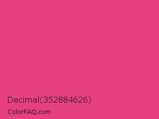 Decimal 352884626 Color is a normal rose color and the nearest color is Cerise Pink #ec3b83. Hex code #e64080 and RGB value is rgb(230,64,128). In RGB color space, this color is composed of 90% red, 25% green, 50% blue, In CMYK color space, this color is composed of 0% cyan, 72% magenta, 44% yellow , 10% black , In HSL color space, this color has a hue angle of 337° , 77% saturation and 58% lightness.