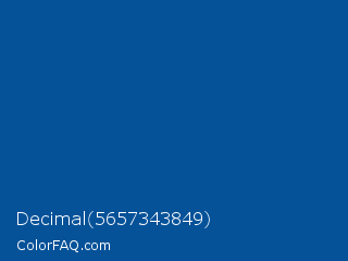 Decimal 5657343849 Color is a normal blue color and the nearest color is Medium Electric Blue #035096. Hex code #055299 and RGB value is rgb(5,82,153). In RGB color space, this color is composed of 2% red, 32% green, 60% blue, In CMYK color space, this color is composed of 97% cyan, 46% magenta, 0% yellow , 40% black , In HSL color space, this color has a hue angle of 209° , 94% saturation and 31% lightness.