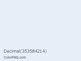 Decimal 353584214 Color is a very light blue color and the nearest color is Glitter #e6e8fa. Hex code #e6eef8 and RGB value is rgb(230,238,248). In RGB color space, this color is composed of 90% red, 93% green, 97% blue, In CMYK color space, this color is composed of 7% cyan, 4% magenta, 0% yellow , 3% black , In HSL color space, this color has a hue angle of 213° , 56% saturation and 94% lightness.