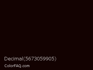 Decimal 5673059905 Color is a almost black red color and the nearest color is Diesel #130000. Hex code #130201 and RGB value is rgb(19,2,1). In RGB color space, this color is composed of 7% red, 1% green, 0% blue, In CMYK color space, this color is composed of 0% cyan, 89% magenta, 95% yellow , 93% black , In HSL color space, this color has a hue angle of 3° , 90% saturation and 4% lightness.