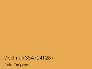 Decimal 354714128 Color is a light orange color and the nearest color is Sunray #e3ab57. Hex code #e8ab52 and RGB value is rgb(232,171,82). In RGB color space, this color is composed of 91% red, 67% green, 32% blue, In CMYK color space, this color is composed of 0% cyan, 26% magenta, 65% yellow , 9% black , In HSL color space, this color has a hue angle of 36° , 77% saturation and 62% lightness.