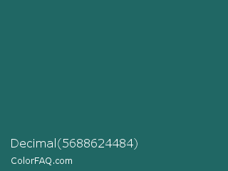 Decimal 5688624484 Color is a dark cyan color and the nearest color is Casal #2f6168. Hex code #206764 and RGB value is rgb(32,103,100). In RGB color space, this color is composed of 13% red, 40% green, 39% blue, In CMYK color space, this color is composed of 69% cyan, 0% magenta, 3% yellow , 60% black , In HSL color space, this color has a hue angle of 177° , 53% saturation and 26% lightness.