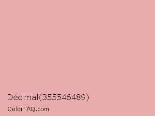 Decimal 355546489 Color is a light red color and the nearest color is Pale Chestnut #ddadaf. Hex code #e9aaab and RGB value is rgb(233,170,171). In RGB color space, this color is composed of 91% red, 67% green, 67% blue, In CMYK color space, this color is composed of 0% cyan, 27% magenta, 27% yellow , 9% black , In HSL color space, this color has a hue angle of 359° , 59% saturation and 79% lightness.