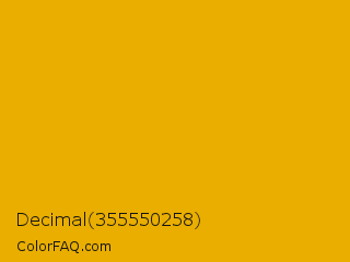 Decimal 355550258 Color is a normal orange color and the nearest color is Corn #e7bf05. Hex code #e9ae00 and RGB value is rgb(233,174,0). In RGB color space, this color is composed of 91% red, 68% green, 0% blue, In CMYK color space, this color is composed of 0% cyan, 25% magenta, 100% yellow , 9% black , In HSL color space, this color has a hue angle of 45° , 100% saturation and 46% lightness.