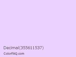 Decimal 355611537 Color is a very light purple color and the nearest color is Pale Lavender #dcd0ff. Hex code #e9d0ff and RGB value is rgb(233,208,255). In RGB color space, this color is composed of 91% red, 82% green, 100% blue, In CMYK color space, this color is composed of 9% cyan, 18% magenta, 0% yellow , 0% black , In HSL color space, this color has a hue angle of 272° , 100% saturation and 91% lightness.