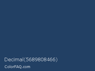 Decimal 5689808466 Color is a dark blue color and the nearest color is Rhino #2e3f62. Hex code #224064 and RGB value is rgb(34,64,100). In RGB color space, this color is composed of 13% red, 25% green, 39% blue, In CMYK color space, this color is composed of 66% cyan, 36% magenta, 0% yellow , 61% black , In HSL color space, this color has a hue angle of 213° , 49% saturation and 26% lightness.