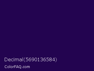 Decimal 5690136584 Color is a very dark violet color and the nearest color is Cherry Pie #2a0359. Hex code #230450 and RGB value is rgb(35,4,80). In RGB color space, this color is composed of 14% red, 2% green, 31% blue, In CMYK color space, this color is composed of 56% cyan, 95% magenta, 0% yellow , 69% black , In HSL color space, this color has a hue angle of 264° , 90% saturation and 16% lightness.