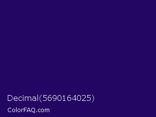 Decimal 5690164025 Color is a very dark indigo color and the nearest color is Paua #260368. Hex code #230663 and RGB value is rgb(35,6,99). In RGB color space, this color is composed of 14% red, 2% green, 39% blue, In CMYK color space, this color is composed of 65% cyan, 94% magenta, 0% yellow , 61% black , In HSL color space, this color has a hue angle of 259° , 89% saturation and 21% lightness.