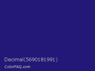 Decimal 5690181991 Color is a dark indigo color and the nearest color is Deep Koamaru #1b127b. Hex code #231877 and RGB value is rgb(35,24,119). In RGB color space, this color is composed of 14% red, 9% green, 47% blue, In CMYK color space, this color is composed of 71% cyan, 80% magenta, 0% yellow , 53% black , In HSL color space, this color has a hue angle of 247° , 66% saturation and 28% lightness.