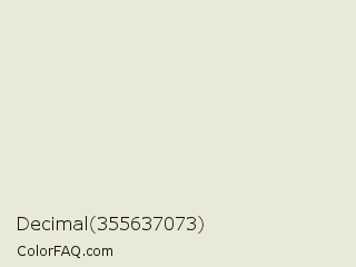 Decimal 355637073 Color is a very light yellow color and the nearest color is White Rock #eae8d4. Hex code #e9e9d7 and RGB value is rgb(233,233,215). In RGB color space, this color is composed of 91% red, 91% green, 84% blue, In CMYK color space, this color is composed of 0% cyan, 0% magenta, 8% yellow , 9% black , In HSL color space, this color has a hue angle of 60° , 29% saturation and 88% lightness.