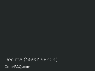Decimal 5690198404 Color is a very dark cyan color and the nearest color is Charleston Green #232b2b. Hex code #232828 and RGB value is rgb(35,40,40). In RGB color space, this color is composed of 14% red, 16% green, 16% blue, In CMYK color space, this color is composed of 13% cyan, 0% magenta, 0% yellow , 84% black , In HSL color space, this color has a hue angle of 180° , 7% saturation and 15% lightness.