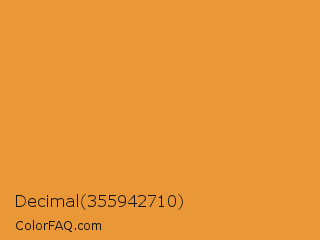 Decimal 355942710 Color is a normal orange color and the nearest color is Tigers Eye #e08d3c. Hex code #ea9738 and RGB value is rgb(234,151,56). In RGB color space, this color is composed of 92% red, 59% green, 22% blue, In CMYK color space, this color is composed of 0% cyan, 35% magenta, 76% yellow , 8% black , In HSL color space, this color has a hue angle of 32° , 81% saturation and 57% lightness.