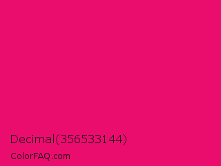 Decimal 356533144 Color is a normal rose color and the nearest color is Red Purple #e40078. Hex code #eb0d6e and RGB value is rgb(235,13,110). In RGB color space, this color is composed of 92% red, 5% green, 43% blue, In CMYK color space, this color is composed of 0% cyan, 94% magenta, 53% yellow , 8% black , In HSL color space, this color has a hue angle of 334° , 90% saturation and 49% lightness.