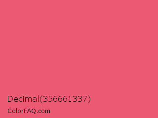 Decimal 356661337 Color is a light red color and the nearest color is Dark Pink #e75480. Hex code #eb5973 and RGB value is rgb(235,89,115). In RGB color space, this color is composed of 92% red, 35% green, 45% blue, In CMYK color space, this color is composed of 0% cyan, 62% magenta, 51% yellow , 8% black , In HSL color space, this color has a hue angle of 349° , 78% saturation and 64% lightness.