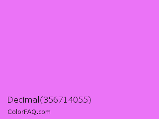 Decimal 356714055 Color is a light magenta color and the nearest color is Heliotrope #df73ff. Hex code #eb73f7 and RGB value is rgb(235,115,247). In RGB color space, this color is composed of 92% red, 45% green, 97% blue, In CMYK color space, this color is composed of 5% cyan, 53% magenta, 0% yellow , 3% black , In HSL color space, this color has a hue angle of 295° , 89% saturation and 71% lightness.