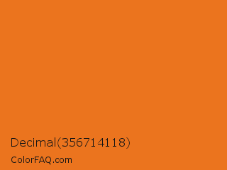 Decimal 356714118 Color is a normal orange color and the nearest color is Tango #ed7a1c. Hex code #eb741e and RGB value is rgb(235,116,30). In RGB color space, this color is composed of 92% red, 45% green, 12% blue, In CMYK color space, this color is composed of 0% cyan, 51% magenta, 87% yellow , 8% black , In HSL color space, this color has a hue angle of 25° , 84% saturation and 52% lightness.