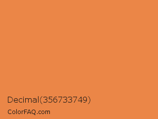 Decimal 356733749 Color is a normal orange color and the nearest color is Jaffa #ef863f. Hex code #eb8647 and RGB value is rgb(235,134,71). In RGB color space, this color is composed of 92% red, 53% green, 28% blue, In CMYK color space, this color is composed of 0% cyan, 43% magenta, 70% yellow , 8% black , In HSL color space, this color has a hue angle of 23° , 80% saturation and 60% lightness.