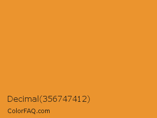 Decimal 356747412 Color is a normal orange color and the nearest color is Fire Bush #e89928. Hex code #eb942e and RGB value is rgb(235,148,46). In RGB color space, this color is composed of 92% red, 58% green, 18% blue, In CMYK color space, this color is composed of 0% cyan, 37% magenta, 80% yellow , 8% black , In HSL color space, this color has a hue angle of 32° , 83% saturation and 55% lightness.