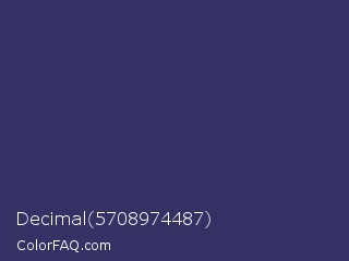 Decimal 5708974487 Color is a dark indigo color and the nearest color is Deep Koamaru #333366. Hex code #353165 and RGB value is rgb(53,49,101). In RGB color space, this color is composed of 21% red, 19% green, 40% blue, In CMYK color space, this color is composed of 48% cyan, 51% magenta, 0% yellow , 60% black , In HSL color space, this color has a hue angle of 245° , 35% saturation and 29% lightness.