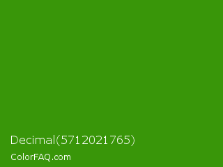 Decimal 5712021765 Color is a normal green color and the nearest color is La Palma #368716. Hex code #399609 and RGB value is rgb(57,150,9). In RGB color space, this color is composed of 22% red, 59% green, 4% blue, In CMYK color space, this color is composed of 62% cyan, 0% magenta, 94% yellow , 41% black , In HSL color space, this color has a hue angle of 100° , 89% saturation and 31% lightness.