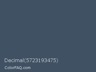 Decimal 5723193475 Color is a normal blue color and the nearest color is Fiord #405169. Hex code #405163 and RGB value is rgb(64,81,99). In RGB color space, this color is composed of 25% red, 32% green, 39% blue, In CMYK color space, this color is composed of 35% cyan, 18% magenta, 0% yellow , 61% black , In HSL color space, this color has a hue angle of 211° , 21% saturation and 32% lightness.