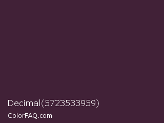 Decimal 5723533959 Color is a very dark magenta color and the nearest color is Livid Brown #4d282e. Hex code #412137 and RGB value is rgb(65,33,55). In RGB color space, this color is composed of 25% red, 13% green, 22% blue, In CMYK color space, this color is composed of 0% cyan, 49% magenta, 15% yellow , 75% black , In HSL color space, this color has a hue angle of 319° , 33% saturation and 19% lightness.