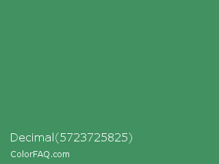 Decimal 5723725825 Color is a normal green color and the nearest color is Middle Green #4d8c57. Hex code #419161 and RGB value is rgb(65,145,97). In RGB color space, this color is composed of 25% red, 57% green, 38% blue, In CMYK color space, this color is composed of 55% cyan, 0% magenta, 33% yellow , 43% black , In HSL color space, this color has a hue angle of 144° , 38% saturation and 41% lightness.