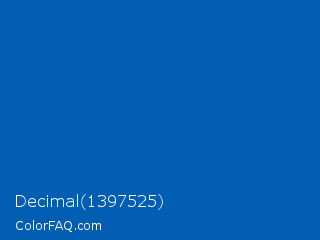 Decimal 1397525 Color is a normal blue color and the nearest color is Endeavour #0056a7. Hex code #025eb3 and RGB value is rgb(2,94,179). In RGB color space, this color is composed of 1% red, 37% green, 70% blue, In CMYK color space, this color is composed of 99% cyan, 47% magenta, 0% yellow , 30% black , In HSL color space, this color has a hue angle of 209° , 98% saturation and 35% lightness.