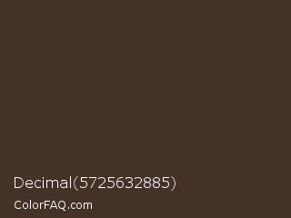 Decimal 5725632885 Color is a very dark orange color and the nearest color is Iroko #433120. Hex code #443127 and RGB value is rgb(68,49,39). In RGB color space, this color is composed of 27% red, 19% green, 15% blue, In CMYK color space, this color is composed of 0% cyan, 28% magenta, 43% yellow , 73% black , In HSL color space, this color has a hue angle of 21° , 27% saturation and 21% lightness.