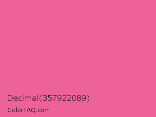 Decimal 357922089 Color is a light rose color and the nearest color is Light Crimson #f56991. Hex code #ed6399 and RGB value is rgb(237,99,153). In RGB color space, this color is composed of 93% red, 39% green, 60% blue, In CMYK color space, this color is composed of 0% cyan, 58% magenta, 35% yellow , 7% black , In HSL color space, this color has a hue angle of 337° , 79% saturation and 66% lightness.