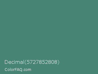 Decimal 5727852808 Color is a normal cyan color and the nearest color is Viridian #40826d. Hex code #478474 and RGB value is rgb(71,132,116). In RGB color space, this color is composed of 28% red, 52% green, 45% blue, In CMYK color space, this color is composed of 46% cyan, 0% magenta, 12% yellow , 48% black , In HSL color space, this color has a hue angle of 164° , 30% saturation and 40% lightness.