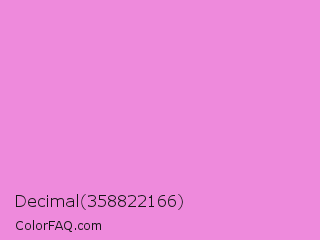 Decimal 358822166 Color is a light magenta color and the nearest color is Pale Magenta #f984e5. Hex code #ee8adc and RGB value is rgb(238,138,220). In RGB color space, this color is composed of 93% red, 54% green, 86% blue, In CMYK color space, this color is composed of 0% cyan, 42% magenta, 8% yellow , 7% black , In HSL color space, this color has a hue angle of 311° , 75% saturation and 74% lightness.