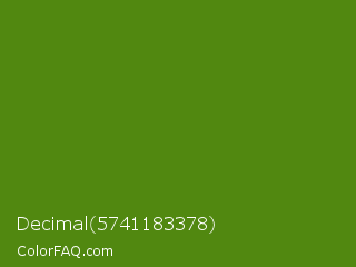 Decimal 5741183378 Color is a dark green color and the nearest color is Vida Loca #549019. Hex code #518810 and RGB value is rgb(81,136,16). In RGB color space, this color is composed of 32% red, 53% green, 6% blue, In CMYK color space, this color is composed of 40% cyan, 0% magenta, 88% yellow , 47% black , In HSL color space, this color has a hue angle of 88° , 79% saturation and 30% lightness.