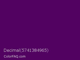 Decimal 5741384965 Color is a very dark purple color and the nearest color is Clairvoyant #480656. Hex code #520261 and RGB value is rgb(82,2,97). In RGB color space, this color is composed of 32% red, 1% green, 38% blue, In CMYK color space, this color is composed of 15% cyan, 98% magenta, 0% yellow , 62% black , In HSL color space, this color has a hue angle of 291° , 96% saturation and 19% lightness.