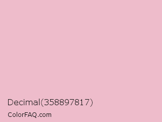 Decimal 358897817 Color is a very light rose color and the nearest color is Cameo Pink #efbbcc. Hex code #eebccb and RGB value is rgb(238,188,203). In RGB color space, this color is composed of 93% red, 74% green, 80% blue, In CMYK color space, this color is composed of 0% cyan, 21% magenta, 15% yellow , 7% black , In HSL color space, this color has a hue angle of 342° , 60% saturation and 84% lightness.