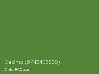 Decimal 5742428800 Color is a normal green color and the nearest color is Maximum Green #5e8c31. Hex code #538438 and RGB value is rgb(83,132,56). In RGB color space, this color is composed of 33% red, 52% green, 22% blue, In CMYK color space, this color is composed of 37% cyan, 0% magenta, 58% yellow , 48% black , In HSL color space, this color has a hue angle of 99° , 40% saturation and 37% lightness.