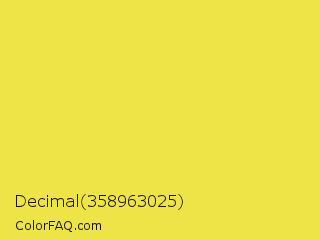 Decimal 358963025 Color is a light yellow color and the nearest color is Minion Yellow #f5e050. Hex code #eee347 and RGB value is rgb(238,227,71). In RGB color space, this color is composed of 93% red, 89% green, 28% blue, In CMYK color space, this color is composed of 0% cyan, 5% magenta, 70% yellow , 7% black , In HSL color space, this color has a hue angle of 56° , 83% saturation and 61% lightness.