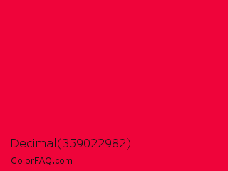 Decimal 359022982 Color is a normal red color and the nearest color is Red Munsell #f2003c. Hex code #ef043a and RGB value is rgb(239,4,58). In RGB color space, this color is composed of 94% red, 2% green, 23% blue, In CMYK color space, this color is composed of 0% cyan, 98% magenta, 76% yellow , 6% black , In HSL color space, this color has a hue angle of 346° , 97% saturation and 48% lightness.