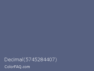 Decimal 5745284407 Color is a normal blue color and the nearest color is Paynes Grey #536878. Hex code #576181 and RGB value is rgb(87,97,129). In RGB color space, this color is composed of 34% red, 38% green, 51% blue, In CMYK color space, this color is composed of 33% cyan, 25% magenta, 0% yellow , 49% black , In HSL color space, this color has a hue angle of 226° , 19% saturation and 42% lightness.