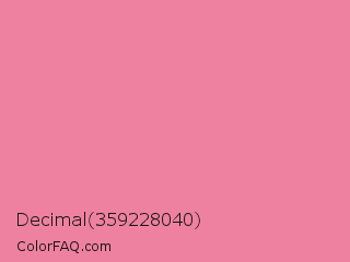 Decimal 359228040 Color is a light rose color and the nearest color is Carissma #ea88a8. Hex code #ef81a0 and RGB value is rgb(239,129,160). In RGB color space, this color is composed of 94% red, 51% green, 63% blue, In CMYK color space, this color is composed of 0% cyan, 46% magenta, 33% yellow , 6% black , In HSL color space, this color has a hue angle of 343° , 77% saturation and 72% lightness.
